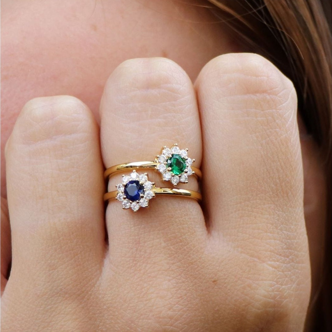 Une magnifique bague en forme de fleur au centre représenté par un oxydes de zirconium bleu et aux pétales d'oxydes de zirconium blancs. Un bijou étincelant et travaillé au design féminin et coloré.