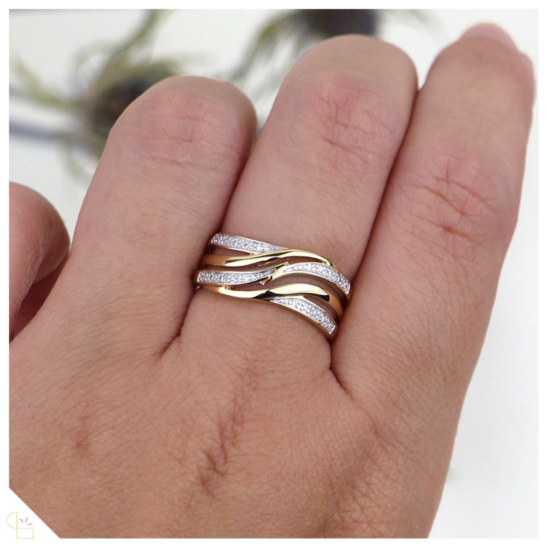 Magnifique bague en or jaune 750/1000è, craquez pour son style de vagues ajourées serties grains de diamants pour une touche d'éclat. Un bijou large et intemporel qui vous accompagnera toute votre vie.