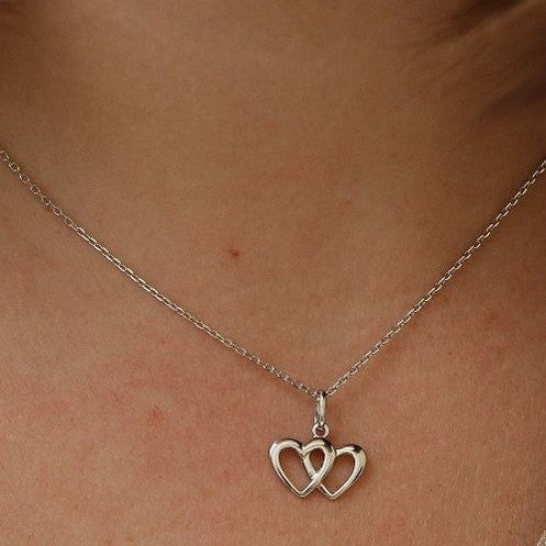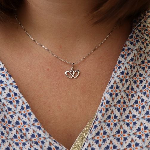 Craquez pour ce pendentif et ses deux coeurs entremêlés. Un bijou en argent rhodié qui vous accompagnera au quotidien et qui s'adaptera à tout type de chaines.