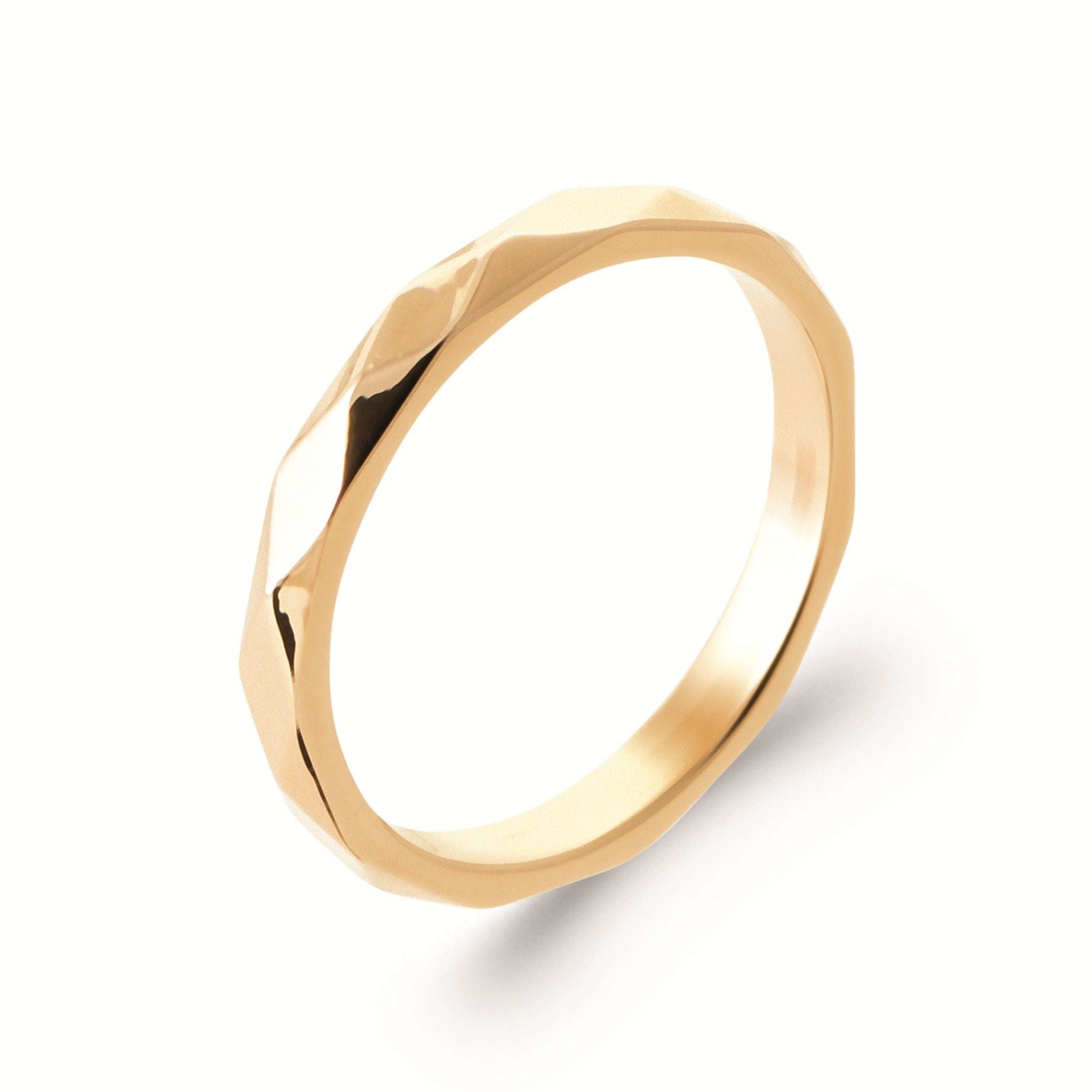 Une bague en plaqué or jaune simple à la finition facettée. Un bijou à porter seul ou en accumulation !