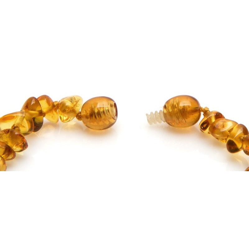 Un collier pour les bébés en ambre couleur miel. Reconnu pour soulager les poussées dentaires douloureuses des plus petits, ce collier avec un fermoir à vis sera le meilleur allié des enfants les plus jeunes !