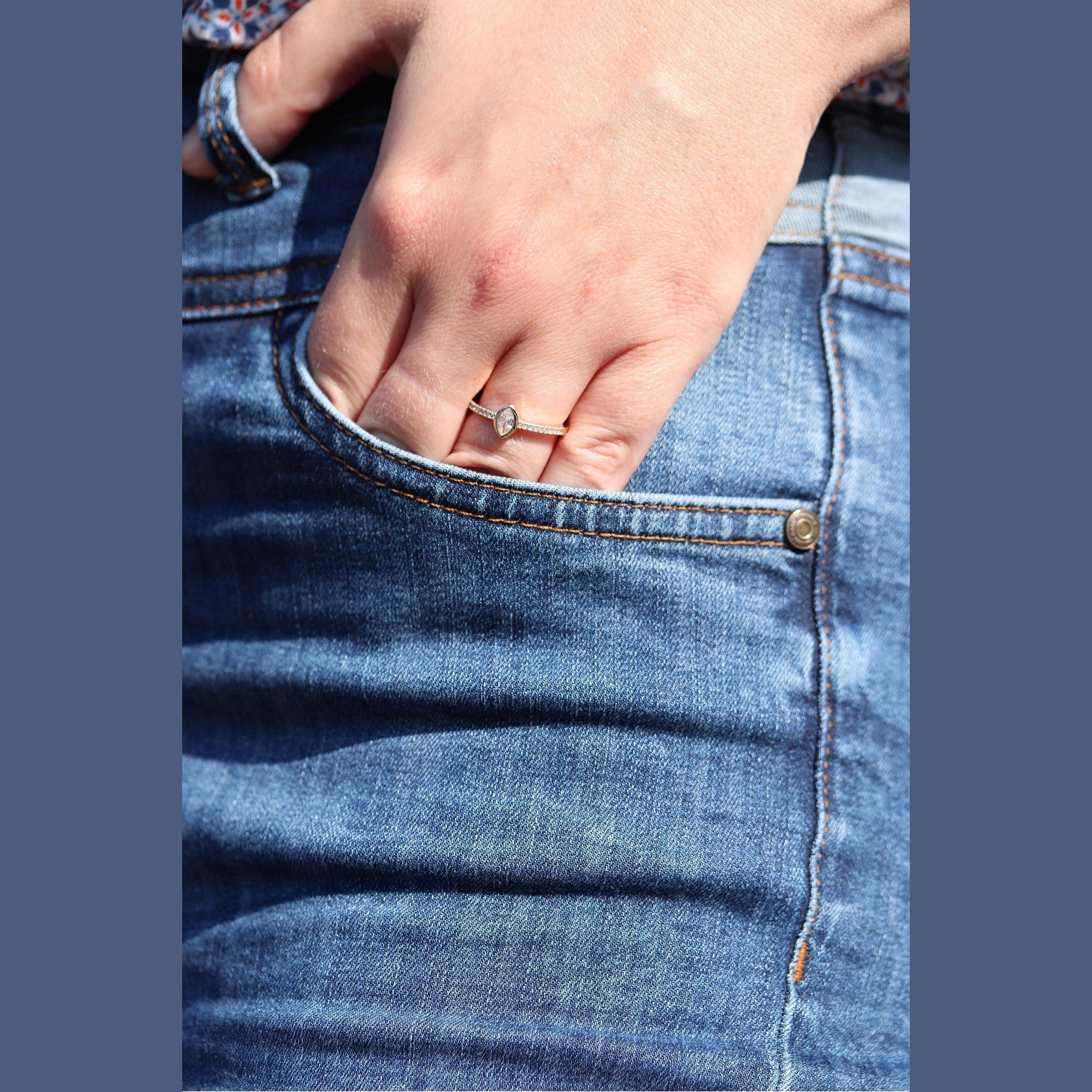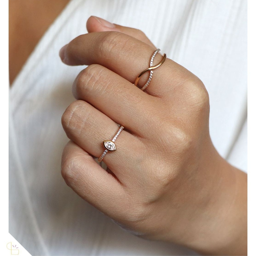 Vous serez sous le charme de ce ravissant solitaire en plaqué or dont le corps de bague est serti d'oxyde de zirconium et son oxyde central est en forme de navette.