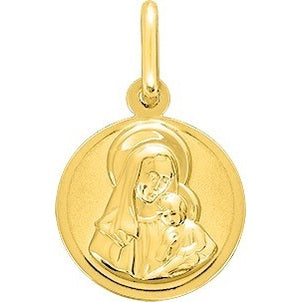 Vous serez sous le charme de cette jolie médaille et de sa représentation en relief de la vierge à l'enfant. Une petite médaille ronde de 12 mm de diamètre en or jaune 375/1000.