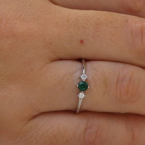 Découvrez cette jolie bague en argent rhodié avec son corps de bague fin et délicat. On retrouve 3 oxydes de zirconium dont 1 vert au centre et 2 blancs de chaque côtés. Colorée et discrète, elle ne quittera plus votre doigt !