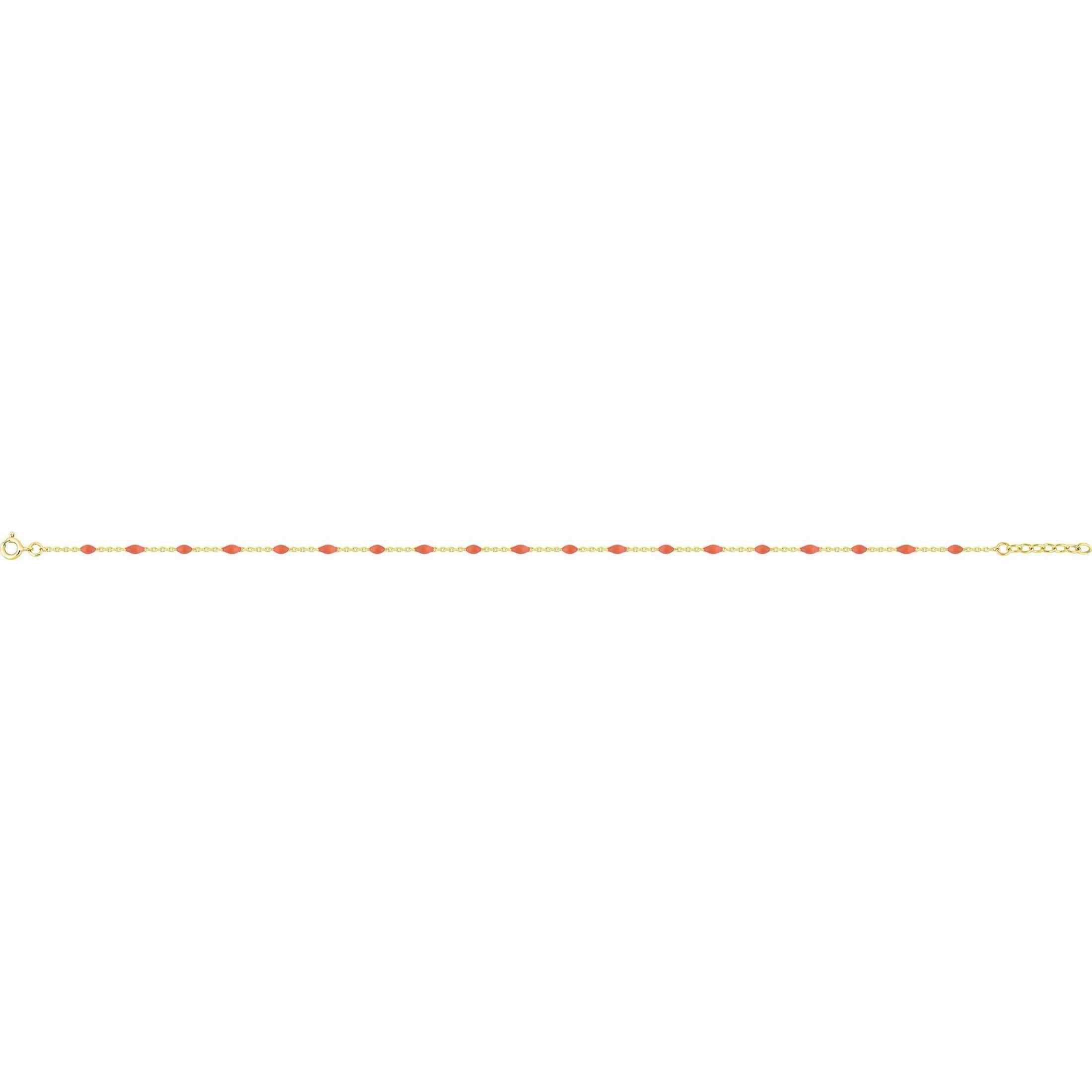 Accessoire indispensable pour les beaux jours, habillez votre cheville de cette jolie chaine en plaqué or ornée de billes de résine corail. Une chaine de cheville simple que vous allez adorer porter !