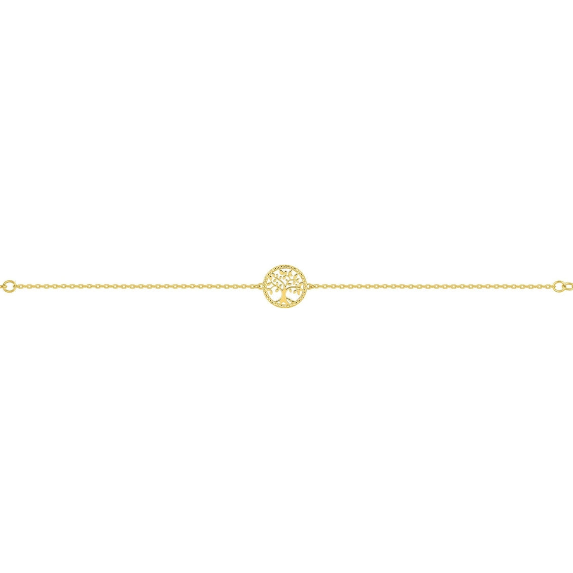 Misez sur la simplicité de ce bracelet en plaqué or orné d'un motif rond arbre de vie ajouré. Chaque feuille est soigneusement représentée et son contour perlé ajoute un joli détail. Réglable de 16 à 19 centimètres, il pourra s'adapter à votre poignet.