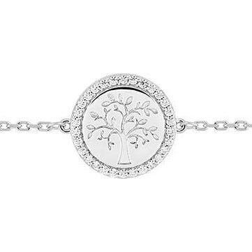 Un superbe bracelet en argent rhodié 925/1000è au motif rond. Avec son contour serti d'oxydes de zirocnium, ce bracelet met en avant un arbre de vie gravé aux jolis détails.