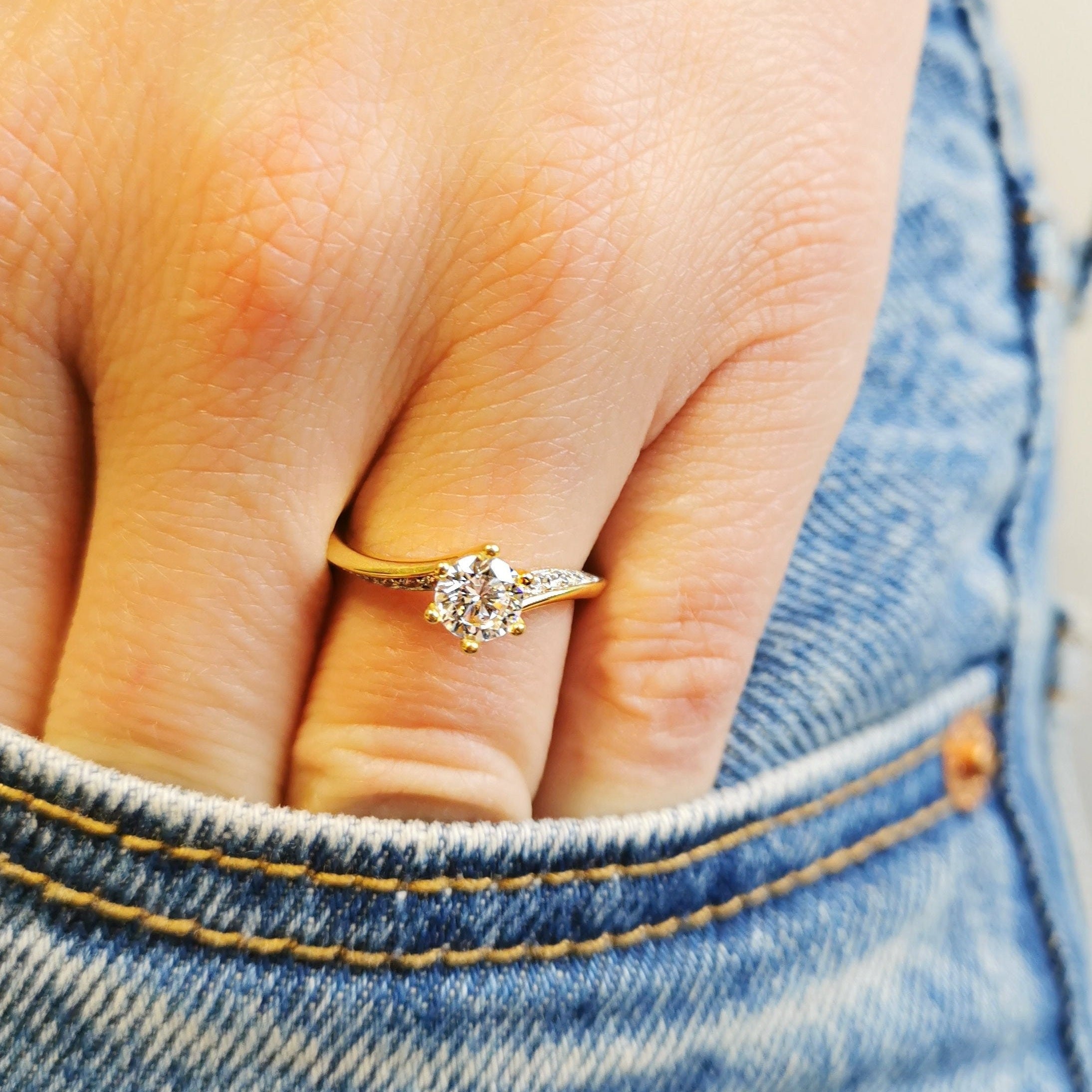 Ce solitaire accompagné vous séduira par son corps de bague croisé et incliné. Au centre, l'oxyde est serti de six griffes, pour un maintien de la pierre optimale.