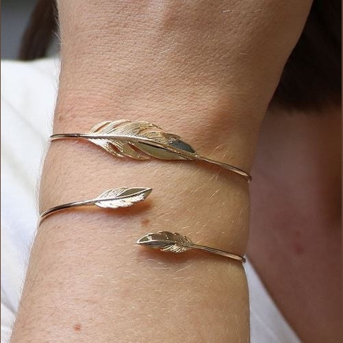 Un très beau jonc ouvert en plaqué or ! Vous allez craquer pour son motif en forme de feuille ! Un bijou délicat et élégant que vous ne pourrez plus quitter !