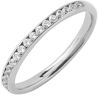 Une alliance fine et délicate. L'éclat des diamants est sublimé grâce au serti rail qui vient sceller les pierre. Craquez pour cette alliance, un modèle classique, intemporel et élégant qui vous suivra toute votre vie.
