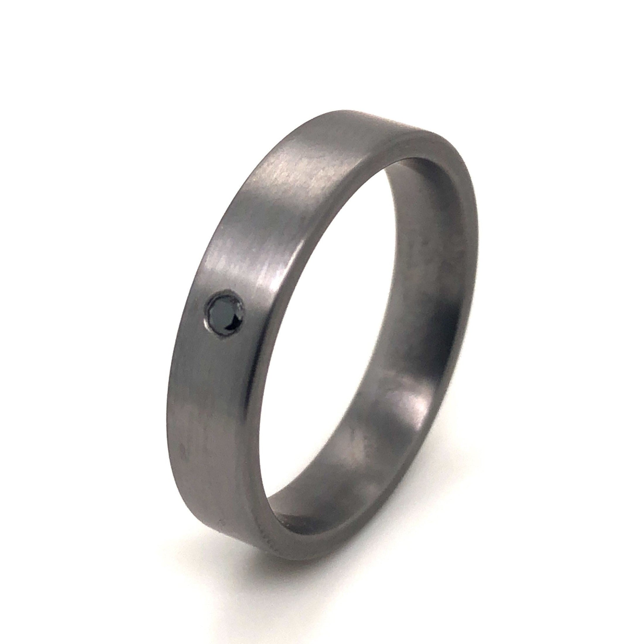 Une alliance résolument moderne en tantale grâce à sa couleur gris anthracite. Ce ruban plat de 5mm de large est légèrement mat et orné d'un magnifique diamant noir de 0.33 carats. C'est l'anneau idéale si vous souhaitez avoir un bijou hors du commun.