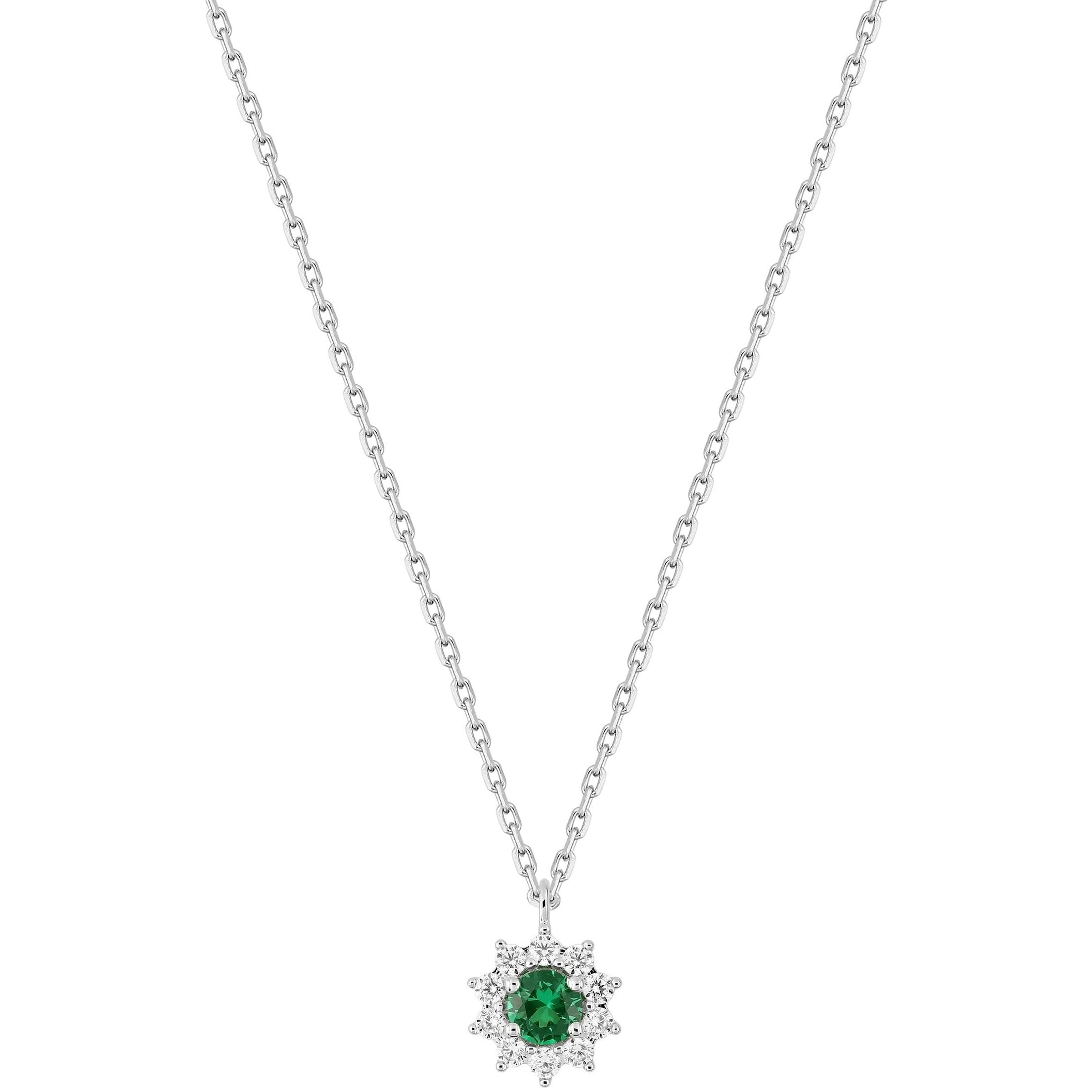 Orné d'un pendentif en forme de fleur, ce collier en argent rhodié 925/1000è ne vous laissera pas indifférent(e) ! Son oxyde de zirconium central vert est accompagné de pétales d'oxydes de zirconium blancs. Un bijou féminin, délicat et étincelant !