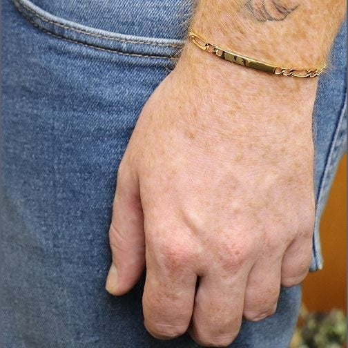 Une gourmette plaqué or à la maille aéré : un modèle idéal pour les adolescents, que vous pourrez faire graver sur les deux faces de la plaque pour un bijou unique.