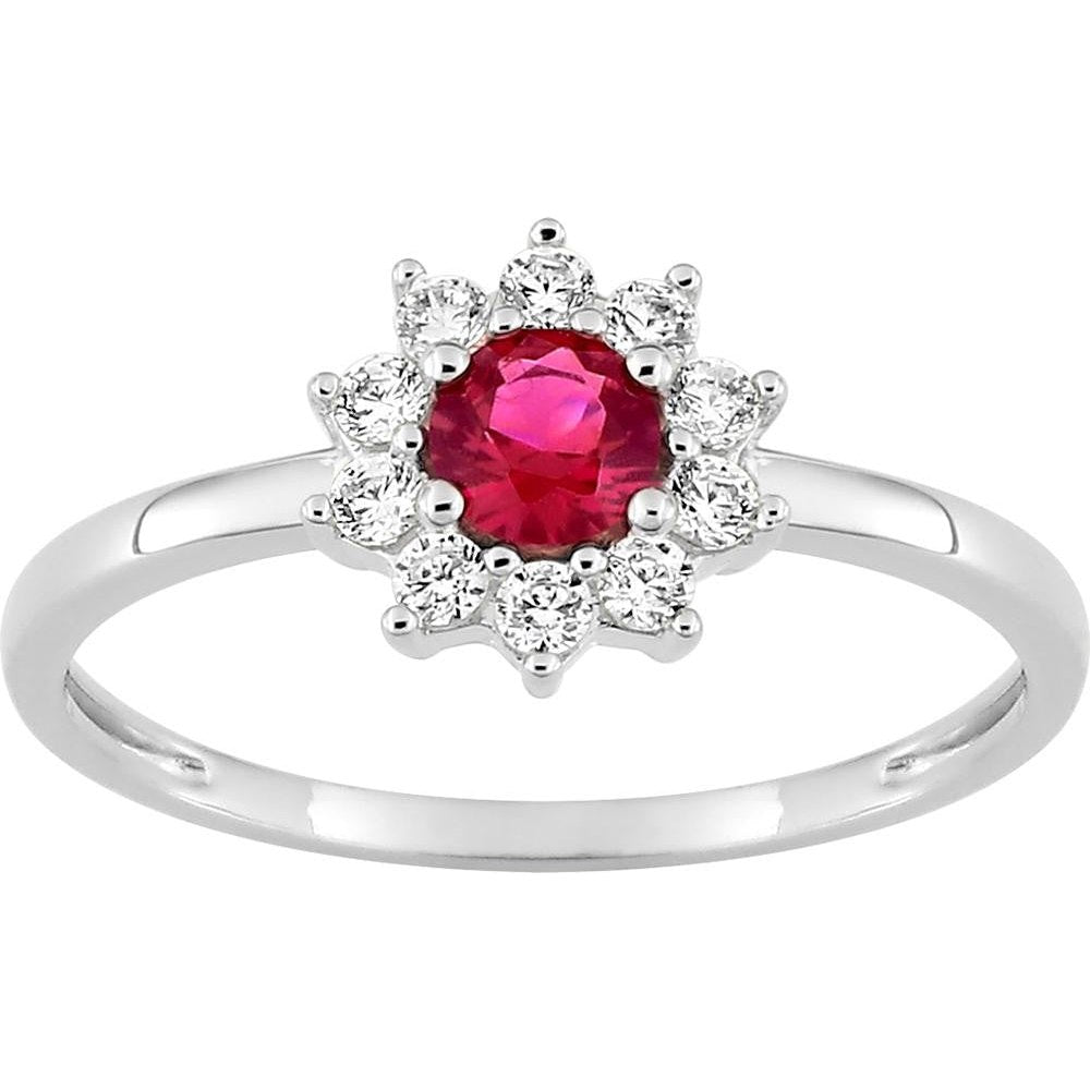 Orné d'un motif en forme de fleur, cette bague en argent rhodié 925/1000è est à la fois intemporelle et moderne. Son oxyde de zirconium central rouge est accompagné de pétales d'oxydes de zirconium blancs. Un bijou féminin, délicat et étincelant !