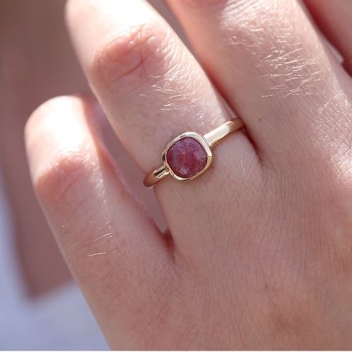 Une jolie bague en plaqué or et rhodonite. Elle est toute en simplicité avec sa pierre centrale rose carrée. Elle vous accompagnera partout.