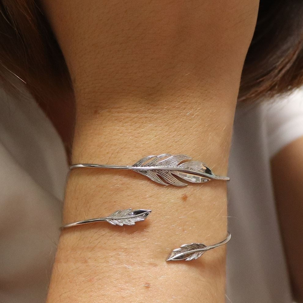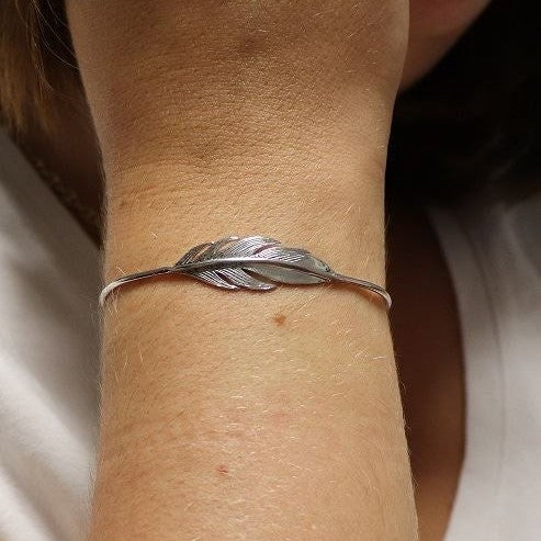 Craquez pour ce jonc en argent rhodié orné d'un motif de plume au centre du modèle. On ne résiste pas à ce look élégant et tendance. Un bracelet qui ne pourra plus vous quitter.