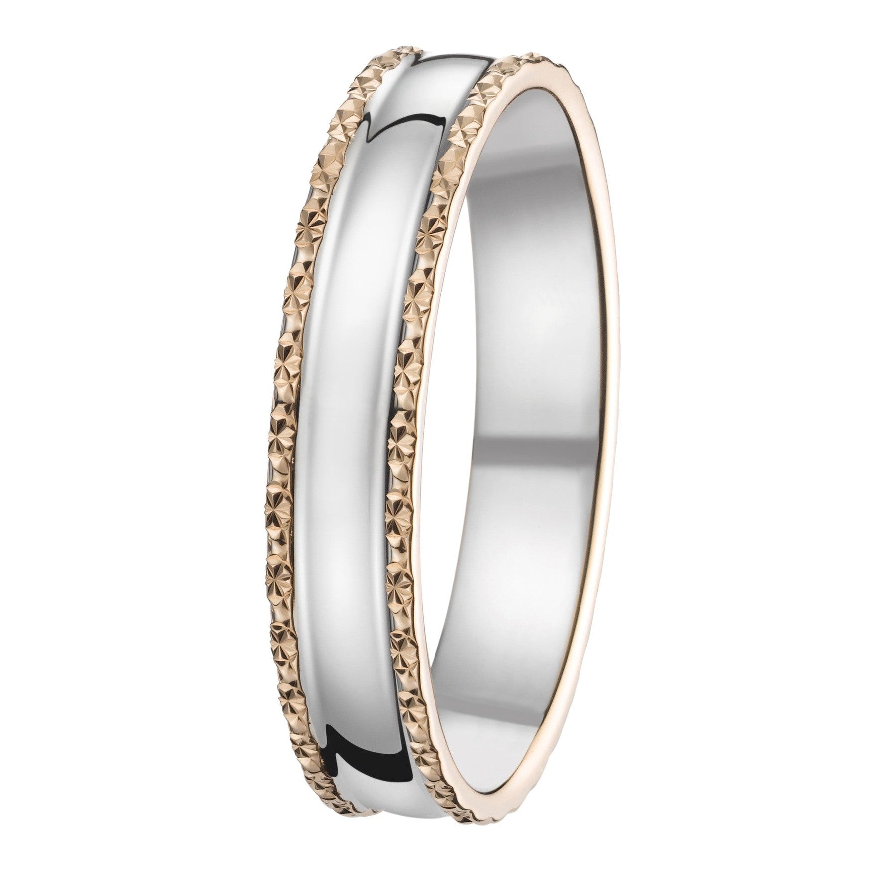 Une superbe alliance originale grâce à ses reliefs travaillés. Elle vous séduira avec son associatoon d'or blanc réhaussé par la douce couleur de l'or rose !