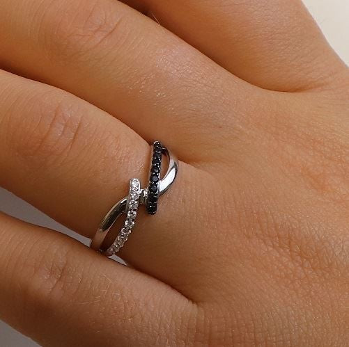 Une superbe bague en argent rhodié et ses oxydes de zirconium blancs et noirs. Un modèle élégant que vous pourrez porter en toutes occasions.