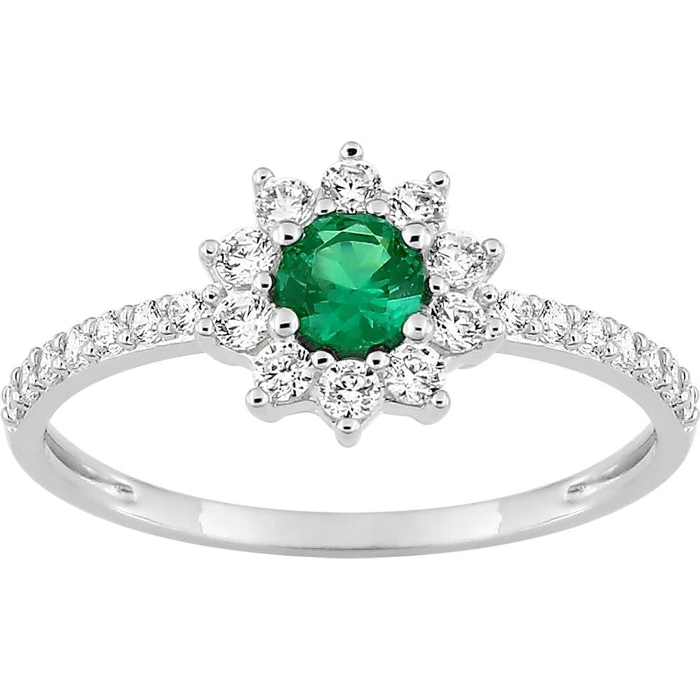Magnifique solitaire en argent rhodié 925/1000è en forme de fleur. Le centre est orné d'un oxyde de zirconium vert et est accompagné d'oxydes de zirconium blancs. Le corps de bague est lui-même serti d'oxydes de zirconium pour un rendu intemporel et lumineux.