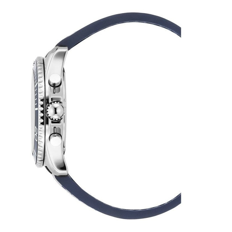 Son cadran bleu foncé est travaillé de manière soignée et à sa lisibilité parfaite propose 3 compteurs et une date à 4 heures. Le boîtier de 43mm de diamètre, surmontée d'une lunette chiffrée et colorée et proposé sur un bracelet en acier inoxydable feront de cette montre le partenaire parfait pour les hommes au style de vie actif.