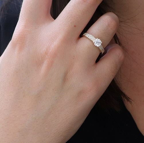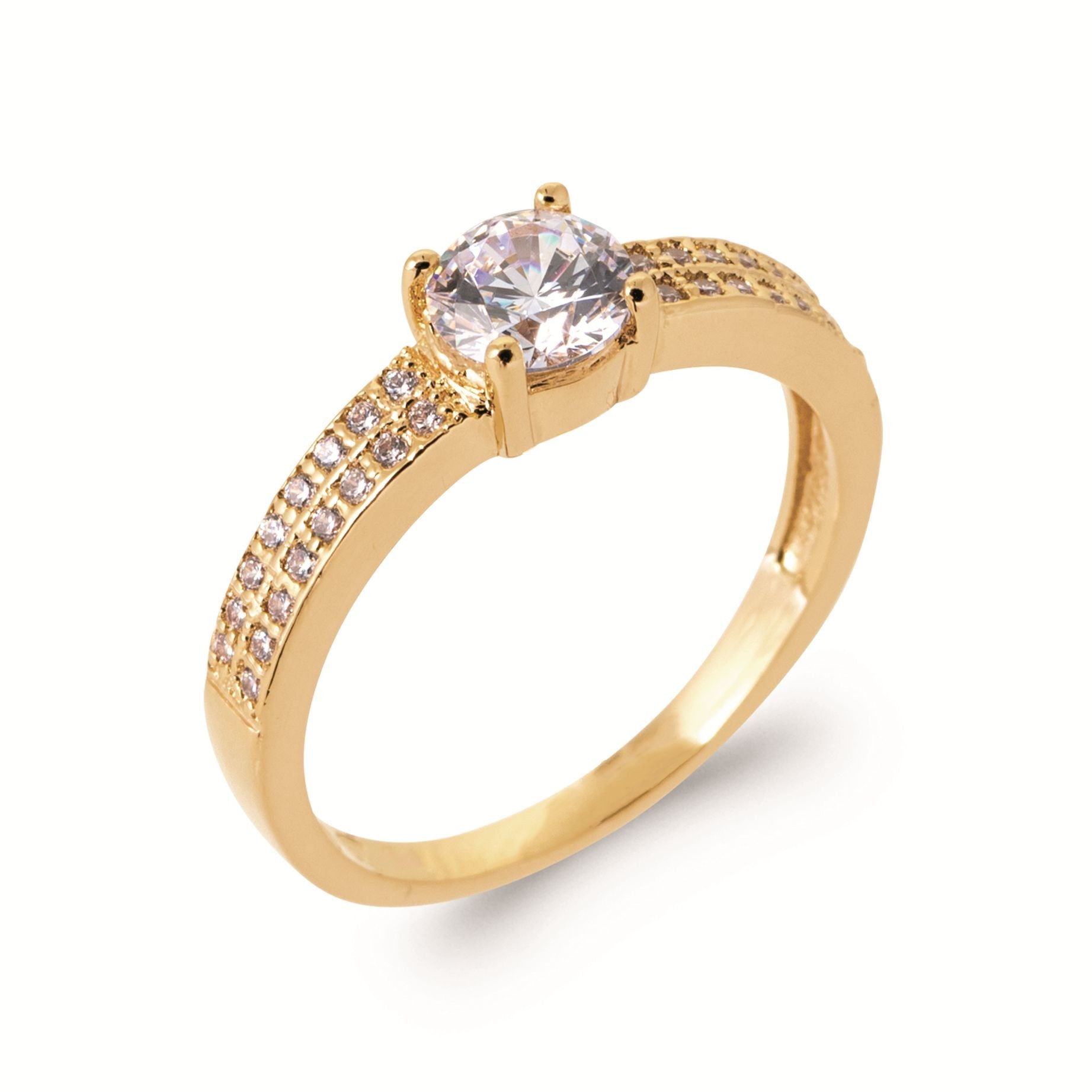 Cette ravissante bague de style solitaire accompagné vous ravira. Son corps de bague large de 3mm est élégamment orne de deux rangées d'oxydes de zirconium blancs pour un rendu éblouissant. Le tout est surplombé d'un oxyde plus grand serti 4 griffes. Une bague très élégante qui attirera tous les regards de par l'éclat de ses pierres.