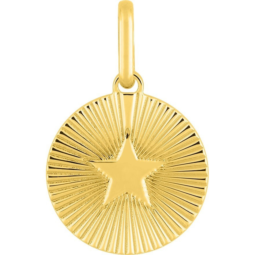 Joli petit pendentif en plaqué or sur lequel apparaît en relief une étoile entourée de stries. Associez-le avec la chaîne de votre choix !