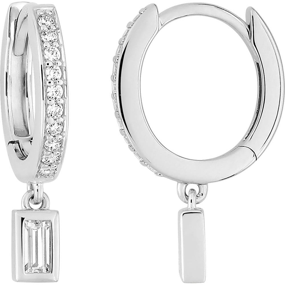 De jolies créoles en argent rhodié 925/1000è serties d'oxydes de zirconium ronds. Sur chaque créole se trouve une pampille mobile composé d'un oxyde de zirconium barrette serti clos. Un bijou résolument moderne !