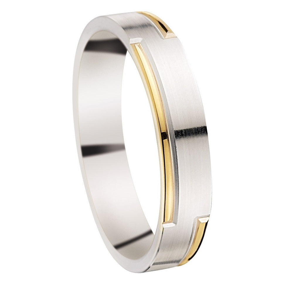 Craquez pour cette alliance bicolore en or blanc 750/1000 qui présente des liserés asymétriques en or jaune 750/1000.