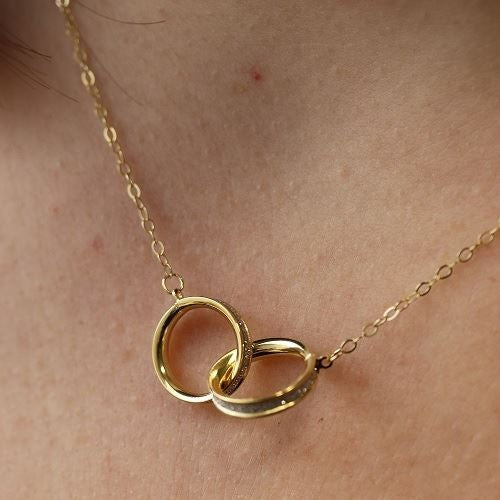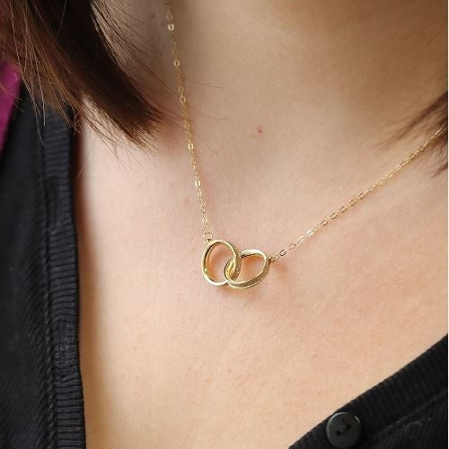 Impossible de résister à ce colier fin et élégant composé de deux anneaux entremélés en or jaune 375/1000 sublimé par des bandes glitter pour un look éclatant.