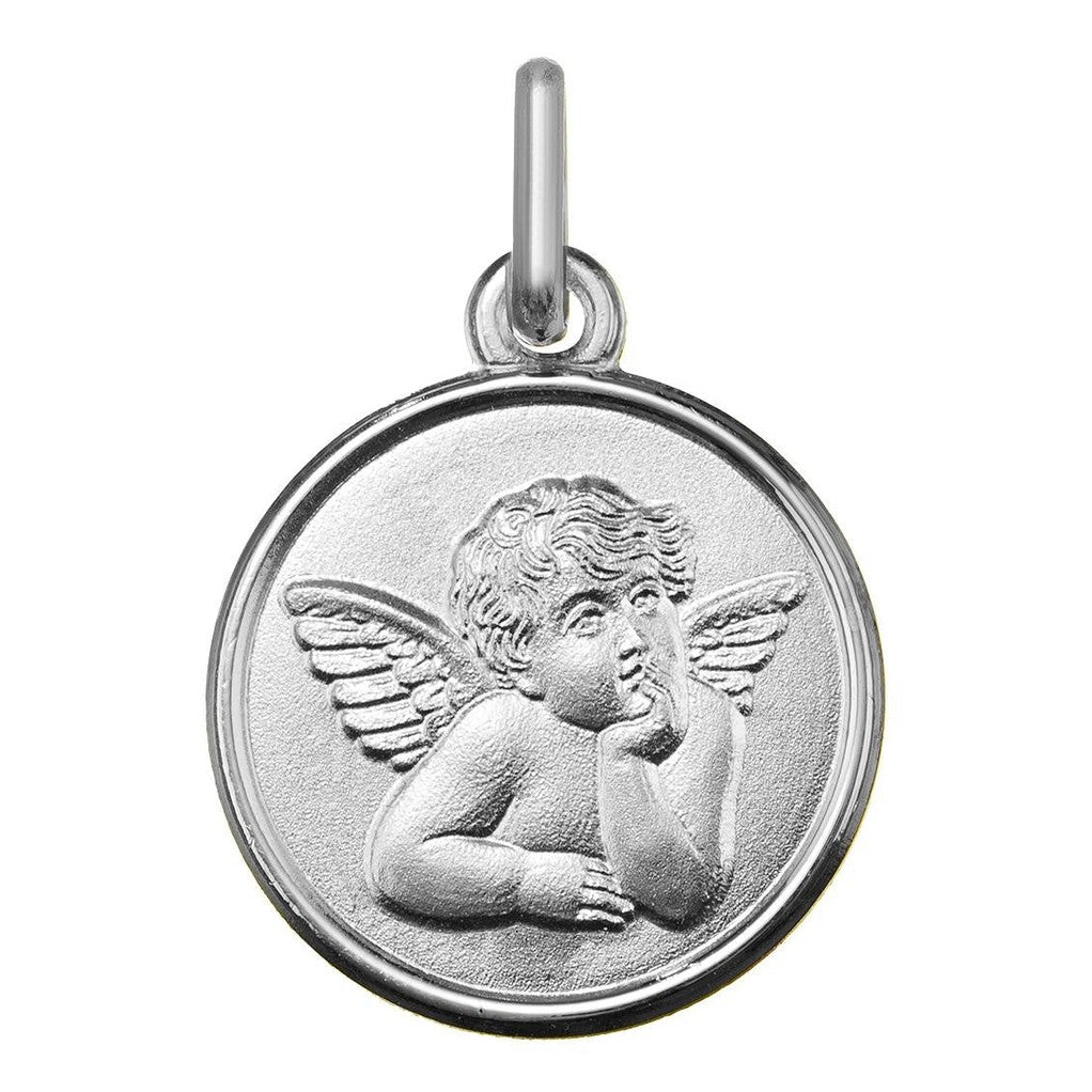 Une médaille en argent rhodié 925/1000è sur laquelle est gravée en relief un ange pensif. Un bijou avec une finition mate et aux nombreux détails qui peut être gravé pour une personnalisation unique.