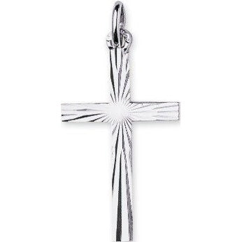 Une superbe croix religieuse en argent rhodié 925/1000. Un modèle finement ouvragé à la finition ciselée.
