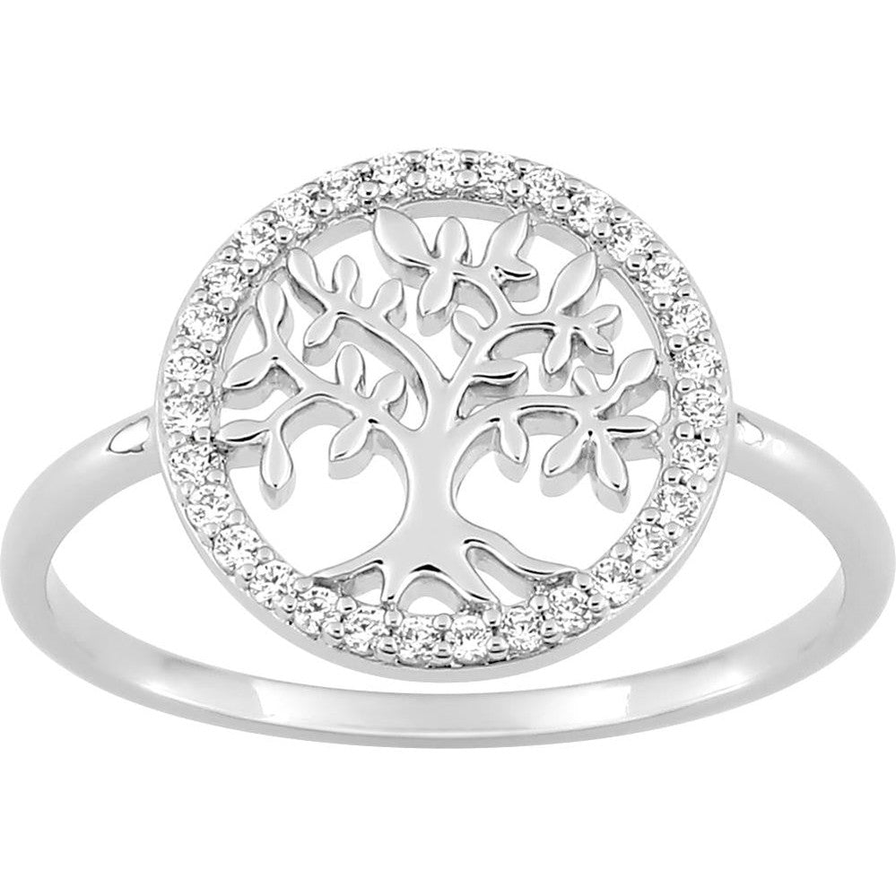 Bague en argent rhodié 925/1000è représentant un arbre de vie joliment détaillé aux contours sertis d'oxyde de zirconium brillants. Elle possède un corps de bague fin lisse et poli. C'est un bijou significatif, l'arbre de vie représentant la famille, un véritable incontournable à (s')offrir !