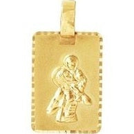 Vous serez sous le charme de cette jolie médaille religieuse rectangulaire en or jaune 375/1000. Une jolie représentation de Saint-Christophe en relief. Son originalité est l'association des finitions. Le personnage de Saint-Christophe est polie, brillante, l'arrière-plan est brossé et sa bordure lapidée.