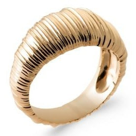 Vous allez adorer cette bague très cossue en plaqué or. Avec son effet drapé et bombé sur le dessus, cette bague plaira à coup sûr aux femmes qui aiment les bijoux plutôt imposants.