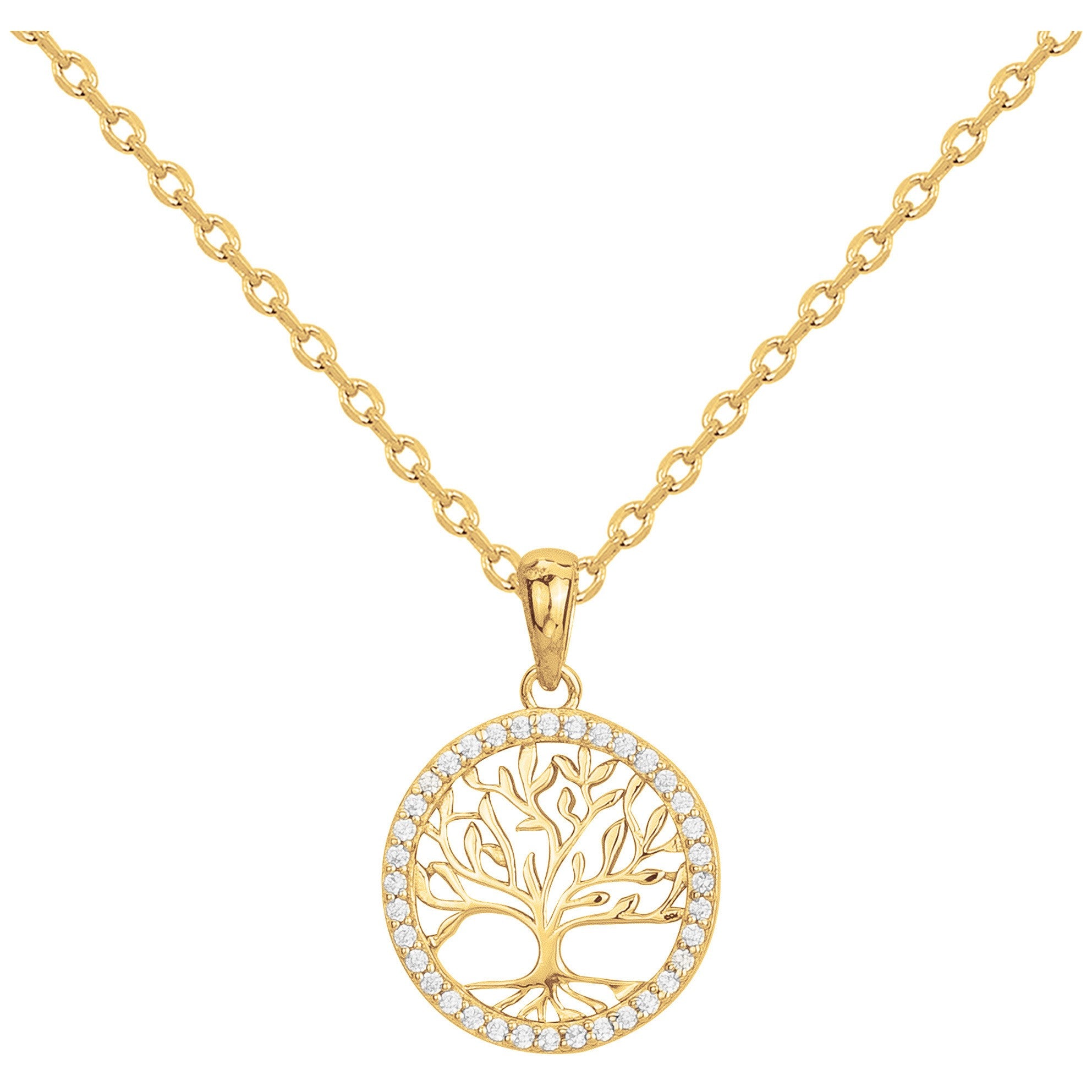 Ce collier en plaqué or met en avant un magnifique arbre de vie ajouré, dont le tour est délicatement serti d'oxydes de zirconium brillants. Un design très travaillé avec une jolie signification qui ne quittera plus votre cou !