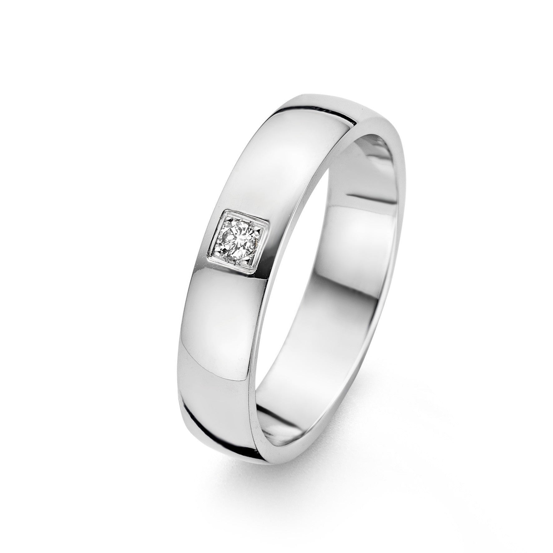 Misez sur la simplcitié avec cette alliance en or blanc 750/1000è large de 4.5mm sertie grain d'un diamant étincelant de 0.12 carats. Une alliance intemporelle, à l'image de votre union.